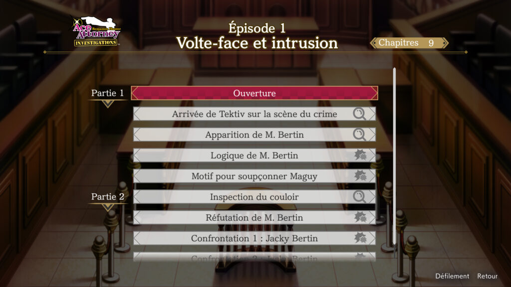 Dans Ace Attorney Investigations : Benjamin Hunter, vous exploiterez les prouesses d’enquêteur de Benjamin Hunter, bien déterminé à révéler la vérité quel qu’en soit le prix. Dans Ace Attorney Investigations 2 : Le Pari du Procureur, qui sort pour la première fois hors du Japon, vous devrez vous préparer à relever un défi encore plus grand et faire face à une nouvelle némésis tout en luttant pour conserver vos droits de continuer d’exercer comme procureurs. Tout au long de ces affaires, vous apprendrez aussi à déceler les incohérences dans les déclarations des témoins, à rassembler les preuves une par une et à découvrir des informations cachées dans le gameplay « d’Échiquier Mental » !