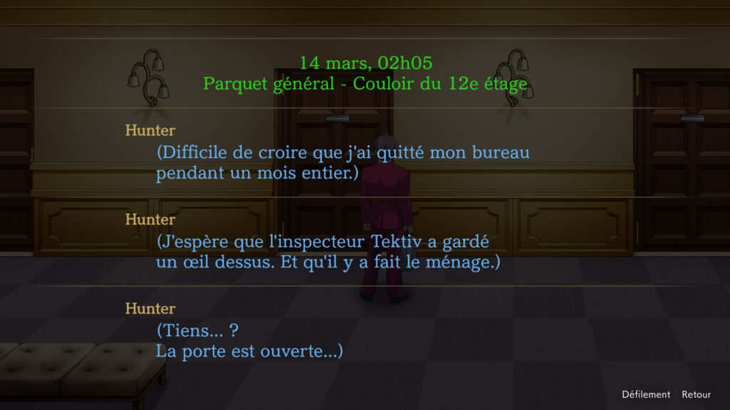 - Fonction d’Historique : il sera toujours possible de revenir sur un détail d’une conversation ou un indice important grâce à la fonction Carnet de notes.