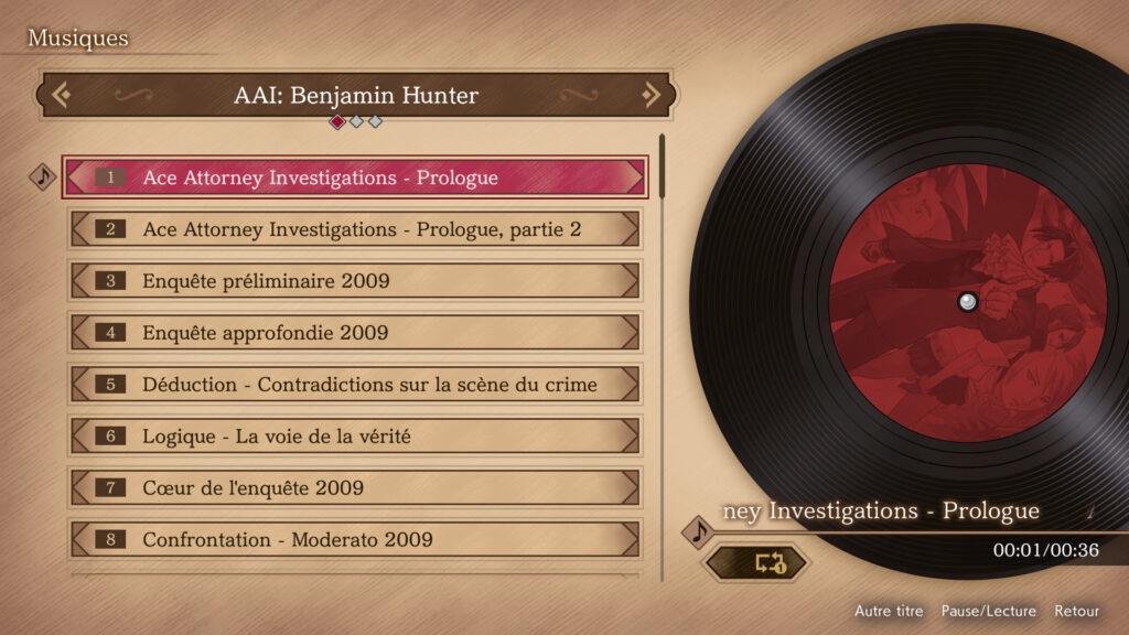 Liste des pistes arrangées de Ace Attorney Investigations : Benjamin Hunter :