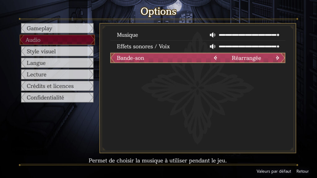 - Bande-son du jeu : il sera possible, dans le menu Options, de remplacer la bande-son originale par les cinq nouvelles pistes arrangées.