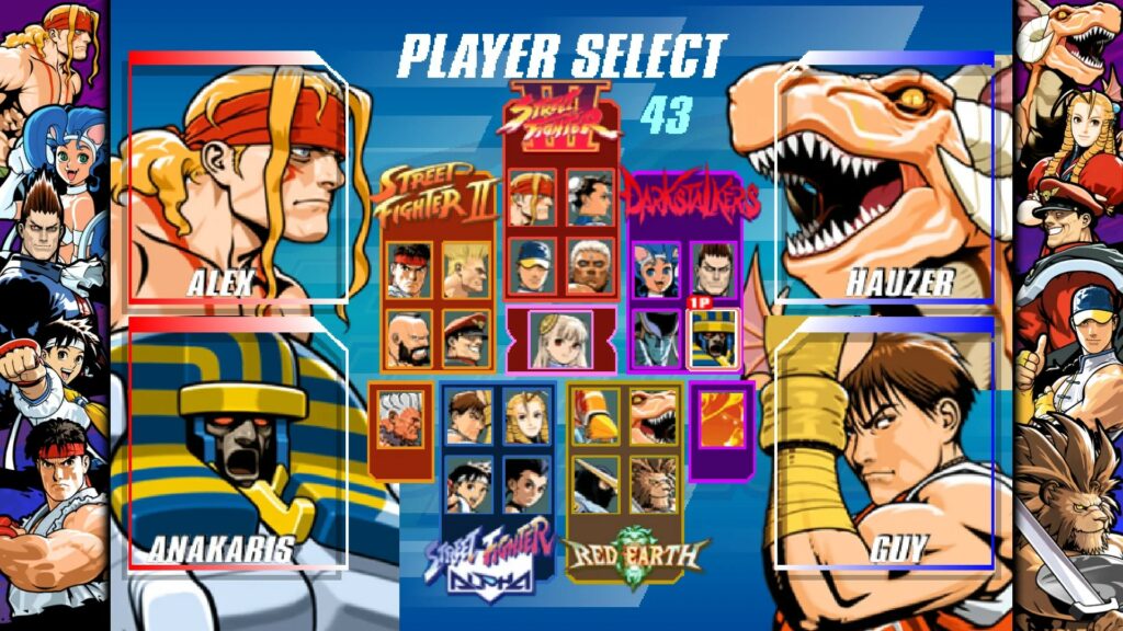 - Capcom Fighting Evolution : les univers de Street Fighter II, Street Fighter III, Street Fighter Alpha, Darkstalkers et Red Earth s’affrontent dans l’ultime crossover 2D de Capcom ! Chaque personnage représentant le système de combat de son jeu respectif, une véritable démonstration de force !