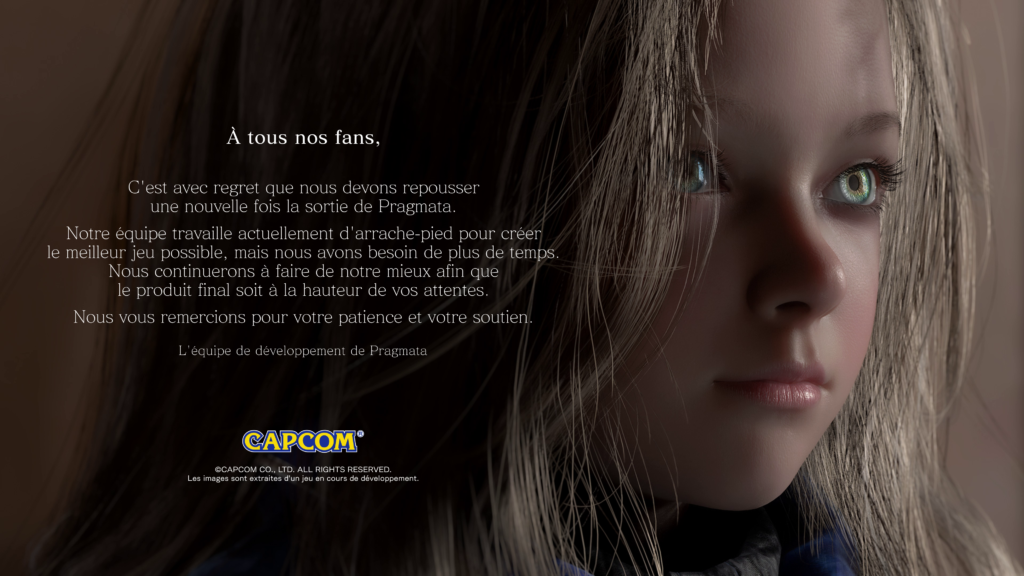 L’équipe de développement, plus que jamais désireuse d’offrir la meilleure expérience possible avec Pragmata, vous remercie pour votre patience.