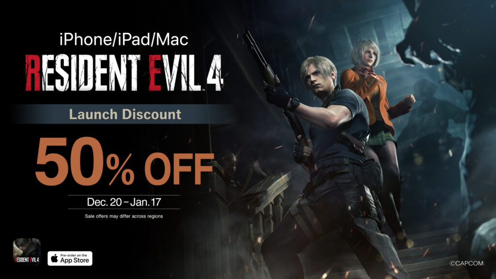 Vous pouvez dès aujourd’hui découvrir une partie de Resident Evil 4 en le téléchargeant gratuitement avant d’accéder à la campagne complète disponible à l’achat. Resident Evil 4 fait également ses débuts sur l’App Store accompagné d’une réduction de lancement très avantageuse jusqu’au 17 janvier 2024.