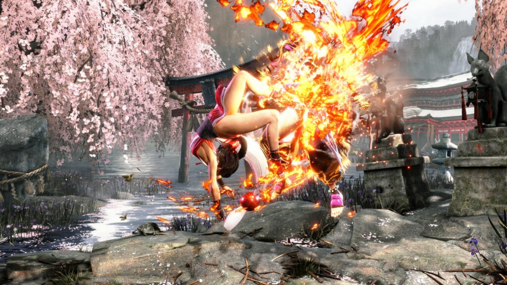 Comme on peut le voir dans le trailer. Mai utilise une variété de techniques familières ou inédites pendant les matchs pour contrôler ses adversaires avec des projectiles enflammés, des coups de pied plongeants et bien plus encore. Quelques exemples :
