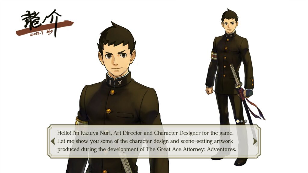 The Great Ace Attorney Chronicles propose un contenu bonus passionnant, notamment huit mini-épisodes supplémentaires séparés de l’intrigue principale. La collection offre également un aperçu des illustrations, de la musique et des enregistrements vocaux des jeux grâce à la nouvelle Galerie d’Art et à l’Auditorium.