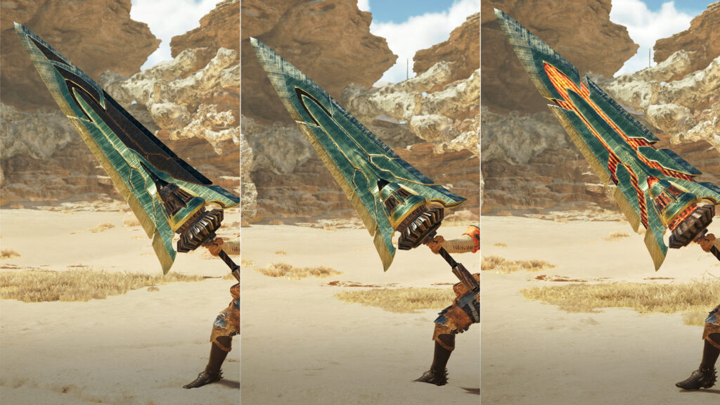 Les hunters sensible à la mode, cherchant à allier esthétique et efficacité, devraient être ravis ! Grâce à la Grande mise à jour 2, fabriquer la dernière arme d’une branche dans un arbre, fabriquer une arme Artian rareté 8, ou une arme Palico de Rang Expert, permet de débloquer ces armes en tant qu’Arme spéciale ! Les Armes spéciales, comme les Armures spéciales, permettent de modifier l’apparence d’une arme sans modifier ses statistiques.