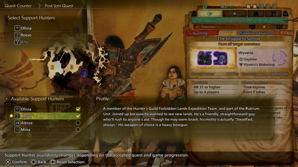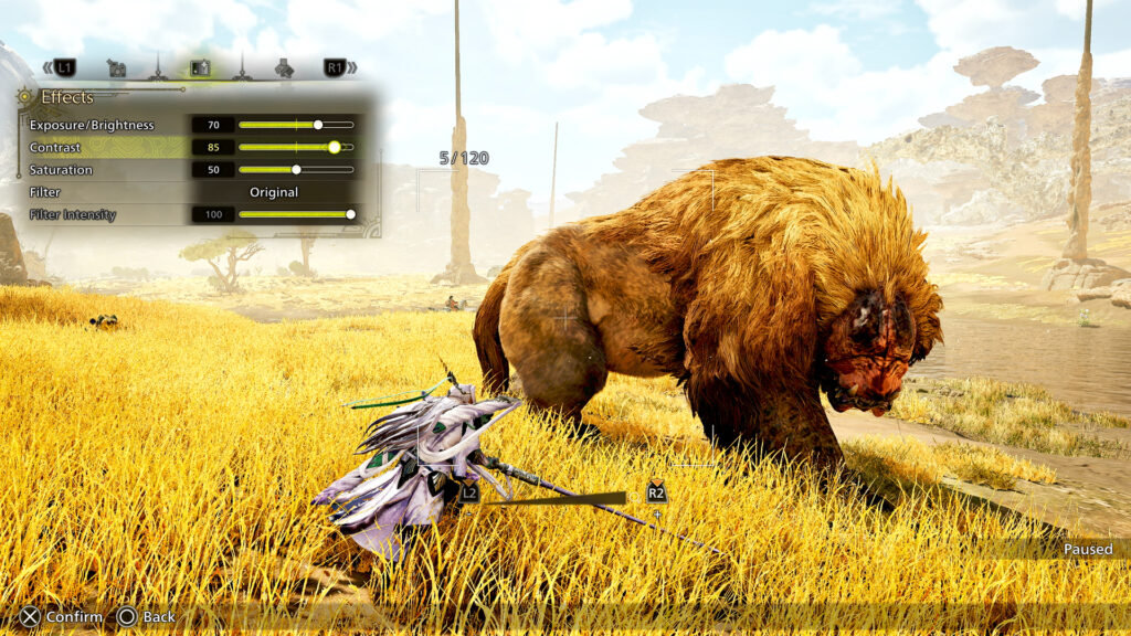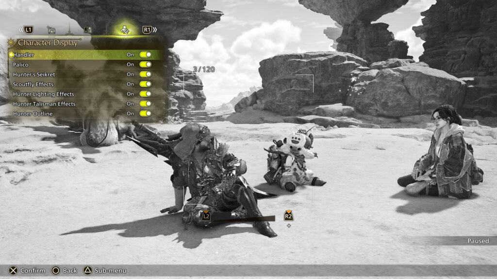 Une fois vos tenues perfectionnées, vous pourrez les mettre en valeur grâce aux nouvelles options du mode photo, telles que les réglages de luminosité et les effets de filtre, ainsi qu’à la possibilité de masquer votre Assistante, Palico, Seikret, etc. dans l’onglet Affichage du personnage. Vous pouvez également compter sur de nouvelles options de soutien sur le terrain : le biologiste curieux, Erik, qui peut remplacer Alma en tant qu’Assistant de l’unité Avis et la Chasseuse de soutien Mina, qui manie l’Épée & bouclier, provenant l’unité Vespae. La Grande mise à jour 2 ajoute par ailleurs la possibilité de choisir les Chasseurs de soutien à appeler pour former le groupe idéal.